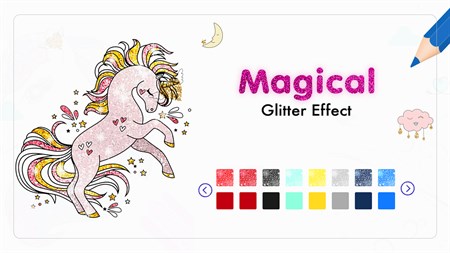 Coloring book with glitters, multiple beautiful princess coloring pages for all princess lovers!