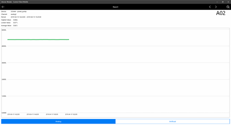 Data Display Modes: * Control * Dashboard * Line Chart * Report * GPS - location on Map