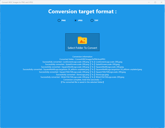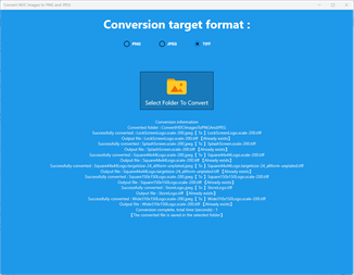 Select a folder to convert, and the image files in the entire folder will be quickly converted to PNG, JPEG, TIFF formats. Convert images in HEIC format to other image formats with consistent photo quality. Supports converting multiple HEICs to PNG, JPEG, TIFF at the same time. Support batch conversion format; more convenient and time-saving. Conversion process information can be listed in detail, and the total conversion time is displayed. The converted files are saved in the original folder. Converted PNG, JPEG, TIFF format images will be compressed in memory while keeping other elements unchanged.