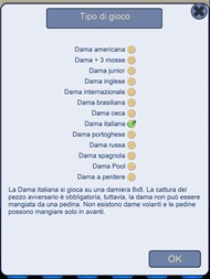 Dama americana Dama + 3 mosse Dama junior Dama inglese Dama internazionale Dama brasiliana Dama ceca Dama italiana Dama portoghese Dama russa Dama spagnola Dama Pool Dama a perdere