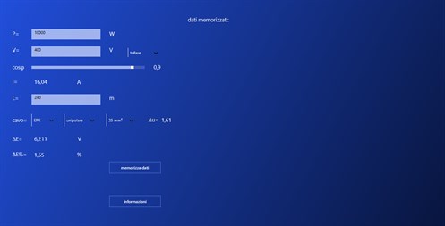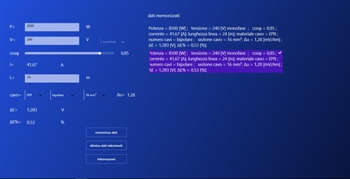 -lunghezza linea -cosφ -tensione (sia monofase che trifase) -numero cavi(unipolare, bipolare e tripolare) -materiale della guaina del cavo(EPR o PVC)