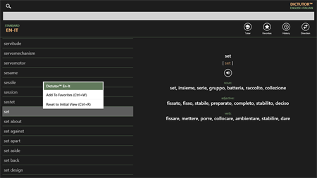 Dictutor EN-IT è un impressionante pacchetto di dizionari inglese-italiano e italiano-inglese con tutor elettronico per utenti che parlano la lingua italiana. È un potente strumento per padroneggiare la lingua inglese. Dictutor ti permette di tradurre all’istante e imparare nuove parole straniere in modo efficace.