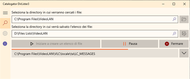Basta selezionare una cartella per la ricerca e la cartella per il salvataggio dei file HTML. L'applicazione creerà un elenco di file nella cartella selezionata (comprese le sottocartelle): una pagina Web per ogni cartella con una navigazione della pagina.