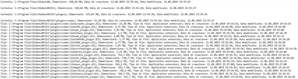 Salva un elenco di file in un formato HTML visuale o in un normale file di testo.
