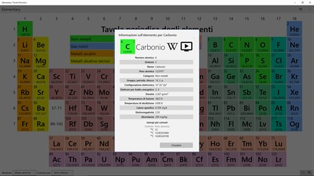 Elementare è una semplice applicazione di riferimento Tabella ed elementi periodica.