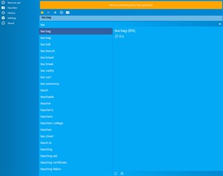 Application features: - Favorites. - History. - Various settings like color themes. - Text to speech.