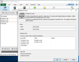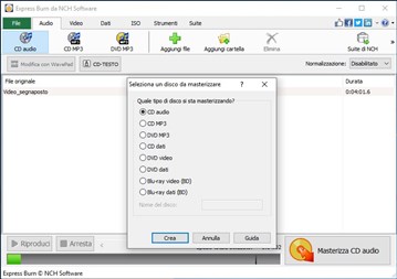 Burn Software di Masterizzazione Dischi Gratis ti permette di creare e registrare dischi velocemente e facilmente. Una qualità audio perfetta è mantenuta tramite registrazione digitale diretta. Express Burn Software di Masterizzazione Dischi Gratis è una suite di masterizzazione CD e DVD ultra veloce. Express Burn Gratis consente di aggiungere capitoli a dischi DVD prima di masterizzare. Express Burn Software di Masterizzazione Dischi Gratis consente di normalizzare i livelli audio prima di masterizzare. Express Burn Gratis supporta un vasto range di formati audio tra cui wav, mp3, flac, wma e altri.