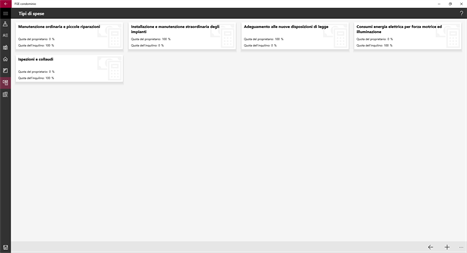 FGE condominio è l'app gratuita per la ripartizione delle spese condominiali: - per ogni unità immobiliare; - per ogni proprietario, in base alle quote di proprietà; - per ogni inquilino, se la spesa prevede la loro partecipazione alla ripartizione.