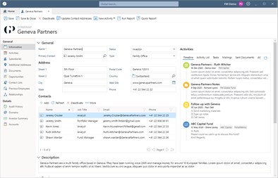 FolioMetrics is a CRM solution for the finance industry. The FolioMetrics mobile app allows you to easily add companies, contacts and activities when using your mobile device. You can also run reports and scan business cards.