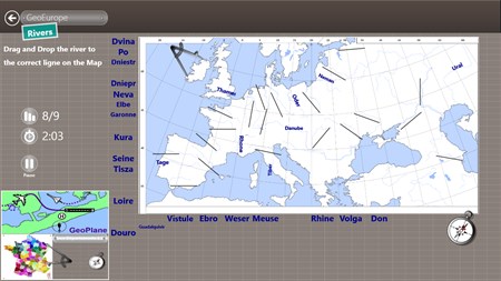 Test your knowledge on the European capitals, countries & states, rivers with GeoEurope. == > Become unbeatable on European countries, capitals & states, rivers This educational application presents itself as a game where you have to click as precisely and as quickly as possible on the location of the queried capital, country, state, Regions or Rivers in Europe. Depending on the distance of the click and the level selected the question is validated or not. Your Internet connection is used only for displaying advertising and our tweets. Full free version.