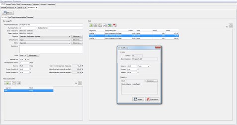 Vuoi Semplificare la gestione articoli per il tuo negozio e magazzino? Questo Programma ti aiuta a gestire la tua gamma di articoli .Puoi organizzare i tuoi prodotti con un numero articolo, nome, descrizione articolo oppure con un codice a barre e successivamente per categorie e sottocategorie. Permette anche altre caratteristiche come unità, stato dell'articolo diversi prezzi di vendita inoltre possono essere aggiunte un illimitato numero di foto.