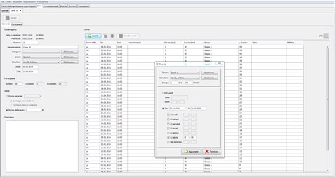 È possibile gestire i partecipanti e controllare i posti liberi. I corsi possono essere presentati nella gestione generale o possono essere gestiti singolarmente.