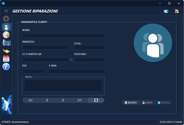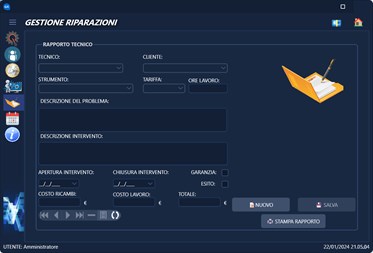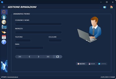 Gestione riparazioni tecnici è il compagno indispensabile per i tecnici, offrendo un modello di abbonamento annuale conveniente che garantisce di rimanere sempre al passo nel mondo dinamico delle riparazioni tecnologiche. l nostro software e pensato appositamente per tecnici e professionisti del settore. Dotato di funzionalità avanzate e interfacce intuitive, Gestione riparazioni tecnici è progettato per semplificare ed ottimizzare i processi di riparazione, oltre che essere disponibile per windows,macos,linux. Per utilizzarlo le credenziali iniziali sono admin pass che si consiglia di cambiare dopo il primo utilizzo.