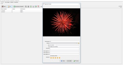 Il programma offre un semplice metodo di organizzzione delle immagini tramite album. Si può aggiungere qualsiasi album a qualsiasi categoria, ad es. "Compleanno", "Vacanze", etc. Puoi aggiungere a ogni album una nota con la data e l'ora della creazione e puoi anche inserire una descrizioneo. Puoi anche contrassegnare un album come "preferito".
