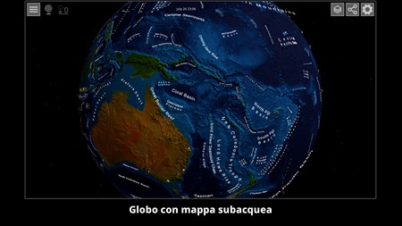 - Globo 3D interattivo con mappa di superficie, subacquea e topografica - Set di mappe topografiche 3D ad alta risoluzione dell'intera superficie terrestre, suddivise in 22.912 singole tessere.