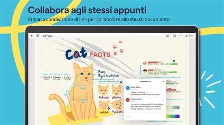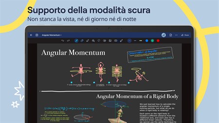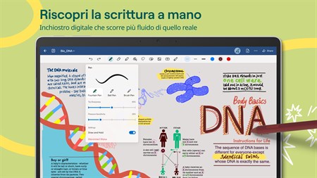 Taccuini digitali: un'infinità di taccuini al prezzo di uno cartaceo. ■ Scrivi con le tue stilo compatibili preferite. ■ La modalità scura non stanca la vista mentre prendi appunti. ■ Modifica dimensioni e posizione del testo sulla pagina degli appunti con lo strumento Lazo. ■ Disegna forme e linee perfette in grado di posizionarsi automaticamente grazie alla tecnologia Shape Recognition. ■ Scegli se cancellare tutto il tratto o solo alcune parti con lo strumento Gomma personalizzabile. ■ Sincronizza tutti i tuoi appunti nei dispositivi Android, Windows, e Web per tenerli sempre al sicuro.