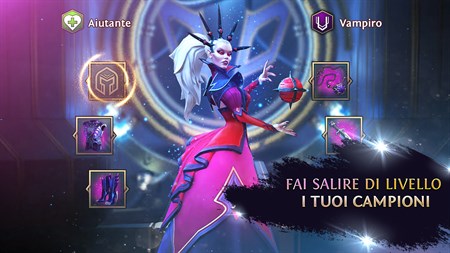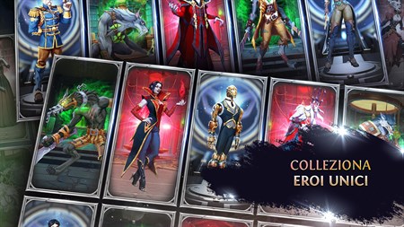 **ESPLORA LA TUA EPICA DIMORA PIENA DI MAGIA** La tua epica avventura inizia in una villa gotica piena di magia oscura in attesa di essere scatenata. Man mano che la tua potenza aumenta, sbloccherai stanze che ti faranno ottenere altri eroi dell'oscurità e poteri aggiuntivi per i tuoi campioni.