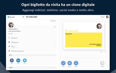hub.cards - Creatore di biglietti da visita digitali e rubrica