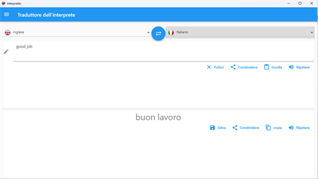 - Condivisione della traduzione, Interprete traduttore invia su social network , posta elettronica etc.
