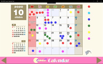 "Cawaii Calendario" ti incoraggia a realizzare i vostri compiti. Belli colorati francobolli visualizzare i risultati. ❤️❤️❤️ Tutte le funzionalità sono disponibili gratuitamente. "Cawaii Calendario" è un guardare calendario mensile semplice e bella. È possibile controllare la data corrente e gli eventi in una rapida occhiata. Godetevi inserendo i vostri appuntamenti, eventi o risultati semplicemente trascinando timbri di colore sul calendario. L'uso dei francobolli di colore è tutto a voi! E 'super intuitivo. Nessun input da tastiera. Niente da imparare.