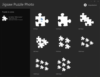 Ogni appassionato di Puzzle sa che per poterne completare uno occorre molto tempo e spazio (spesso un tavolo dedicato), quasi sempre se ne riesce a fare uno per volta e soprattutto si può fare solo puzzle con le foto che il produttore vi fornisce. Immaginate di disporre di tutto lo spazio che volete comodamente seduti davanti al vostro PC... Immaginate di poter caricare una qualsiasi vostra foto o una trovata sul Web ... Immaginate di poter sospendere un Puzzle per iniziarne temporaneamente un altro o volerlo riprendere molto tempo dopo quando avrete di nuovo del tempo ...