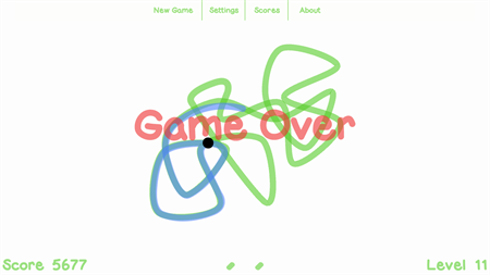 Kink generates random looped curves for you to trace over. You can start tracing from any portion of the curve. A black spot appears at the opposite portion and starts to follow the curve in the same direction you took. Avoid touching this dot or you will get kinked. If traced correctly a new curve is created with an increased level of difficulty.