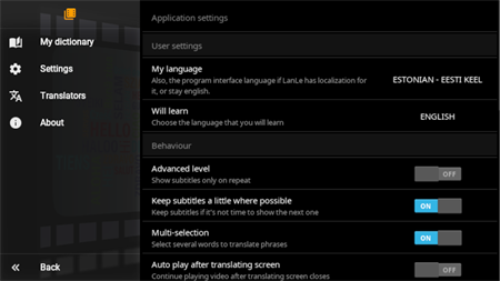 Watching foreign-language movies with subtitles is the most effective way to learn the language. This program makes this way of learning simpler and more comfortable. Just tap unknown words and explore translations. Add unknown words and phrases to your user dictionary for learning Anki, a great application for memorizing anything you want.