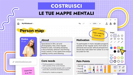 - Aggiungi e modifica facilmente il testo: annota tutto ciò di cui hai bisogno con tutti gli strumenti essenziali; - Aggiungi creatività: disegna grafici e schizzi utilizzando vari pennelli e adesivi (Include contenuti premium); - Usa tutti gli strumenti forniti per visualizzare i tuoi piani e le tue idee nel tuo stile unico; - Importa e organizza: gestisci e salva i tuoi progetti per un lavoro efficiente.