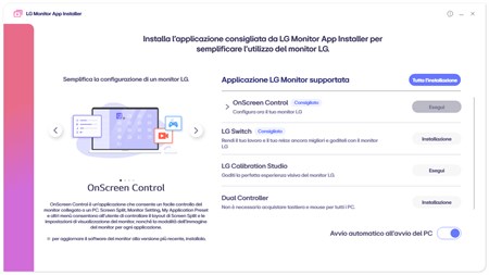 Se l'elenco delle app supportate per il monitor LG collegato al PC non viene visualizzato, visitare la home page di LGE per scaricare e installare le app supportate.
