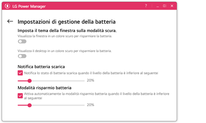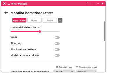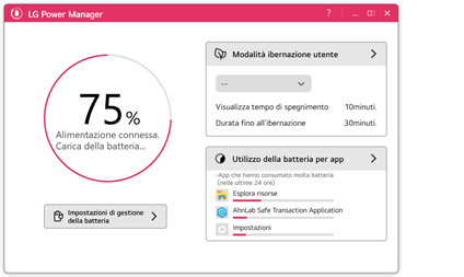 LG Power Manager consente di configurare le impostazioni di alimentazione in base all'ambiente dell'utente per gestire la batteria in modo efficiente.