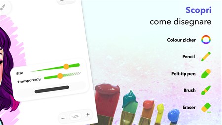 * Annulla o ripristina * Matita e gomma * Opacità e dimensione della matita * Palette dei colori * Suggerimenti per il disegno * Pennelli e pennarelli * Disegno AI