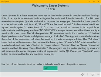 Linear Systems is a linear equations solver up to third order system in double-precision Floating-Point.