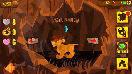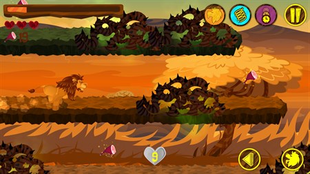 Do not forget to visit Lion’s Cave. There you can watch as the character grows, view his collection of trophies and also his extra powers: Slow Motion, Double Jump and Tough Skin. In the game you can find variety spieces of wild animals (both herbivores and carnivores): rhino, gazelle, leopard, cheetah, vulture.