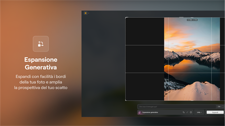 Utilizza la tecnologia con AI generativa per rimuovere elementi indesiderati dai tuoi scatti, espandere l'inquadratura delle tue foto e provare nuovi modi per dare vita alla tua visione. Inoltre, esplora funzionalità come la rimozione di oggetti e la cancellazione dello sfondo per ottenere immagini più pulite. Questo editor di immagini ti offre prestazioni di massimo livello.