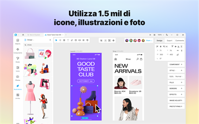 Godetevi le funzioni: — collaborazione in tempo reale in tutto il mondo — 1 500 000 icone, foto e illustrazioni — potenti strumenti di IA — supporto per Figma e Sketch — archiviazione di file nel cloud — modalità online e offline — bassi requisiti di sistema — tradotta in 25 lingue E molto altro ancora!