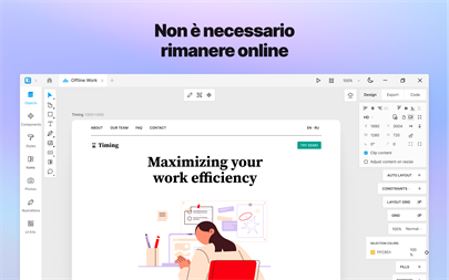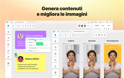 POSSIBILITÀ INFINITE Non lasciate che altre applicazioni limitino il flusso della vostra immaginazione, progettate esperienze uniche con il layout automatico, l'editor di archi, l'indice Z automatico, la colorazione automatica delle forme e il web design collegato.
