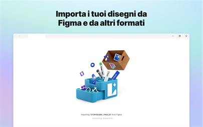 IMPORTAZIONE DI FILE DA FIGMA Siete appena usciti da Figma? Non c'è bisogno di perdere tempo prezioso per ricostruire i vostri progetti! Con Figma Import è possibile trasferire i file in entrata e in uscita. Non dovrete più preoccuparvi di errori di conversione!