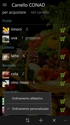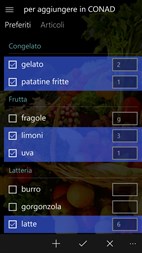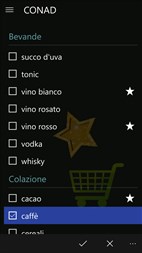 Scrivere la vostra lista di shopping non è mai stato più facile: con Memo Courses, è possibile elencare la lista della spesa per ciascuno dei vostri soliti negozi. Creare una lista della spesa per uno negozio e scegli il tuo articoli da acquistare tra una scelta di oltre 200 prodotti pre-definiti, organizzati per categorie. Se non riesci a trovare l'articolo che cerchi, è possibile creare in pochi clic. È anche possibile creare una lista dei 'Preferiti' (per scegliere nella lista degli articoli) per ogni lista della spesa. I Preferiti consentono più rapidamente trovare i tuoi articoli al momento della creazione della lista di prodotti da acquistare. E per non ingombrare il tua lista di preferiti, è possibile decidere quali categorie sono inclusi nella tua lista. Ordina le tue categorie per lista della spesa: la convalida dei tuoi acquisti sarà nell'ordine degli scaffali del negozio corrispondente alla tua lista della spesa. Una categoria non è appropriata: modificarla, eliminarla o crearne una nuova. Non appena avete acquistato un articolo, controllarlo: esso verrà rimosso dal tua lista e metterli nel carrello. Quando la spesa è terminata, svuota il carrello: sei pronto a mettere degli articoli nella vostra lista.