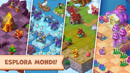 IL TUO MONDO! Solo qui puoi trovare gli oggetti più sorprendenti che potrai mai fondere! LA TUA SCELTA! Puoi fondere draghi, alberi, gemme e praticamente qualsiasi cosa tu trovi nel tuo viaggio di scoperta! LE TUE REGOLE! Le isole sono piene di magia merge e il merge craft ti permette di fare le più grandi fusioni nel modo in cui TU vuoi!