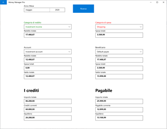 È possibile contare i crediti totali, l'importo ricevuto e l'importo residuo di ciascun credito. È possibile contare il totale da pagare, l'importo pagato e l'importo residuo da pagare per ciascun debito.