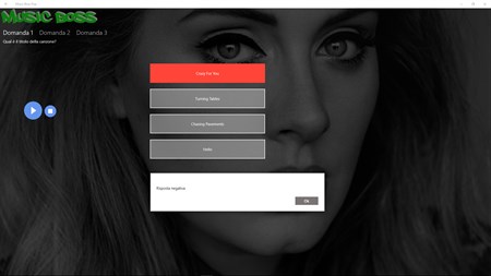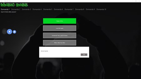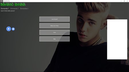 Esamini la Sua conoscenza musicale sulla musica popolare. Goda da solo o con amici per scoprire i nomi le migliori canzoni. Molte categorie sono disponibili. I più grandi colpi, le canzoni più del ballo da 90 2000 e fin da 2010. Trovi i più grandi artisti: Adele, Ed Sheeran Michael Jackson, Madonna Kylie Minogue, Shakira Justin Bieber e molti più