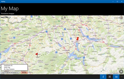 My Map visualizza la posizione geografica sulla mappa in cui ci si trova attualmente. La posizione viene aggiornata automaticamente quando ci si sposta. La mappa può essere visualizzata come mappa stradale o aerea. Può essere spostato, ingrandito e allineato alla direzione di visione o al nord. Una bussola visualizza la direzione geografica, una scala mostra le distanze sulla mappa. È possibile anche visualizzare ulteriori informazioni sulla posizione corrente come via, città e regione. Utilizzando la misurazione della distanza, viene visualizzata la distanza da qualsiasi posizione selezionata sulla mappa.