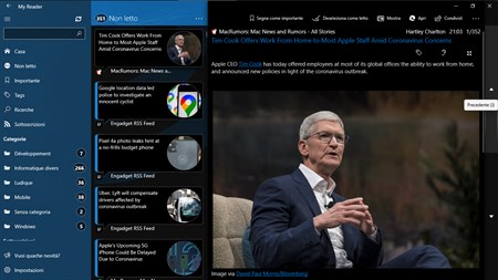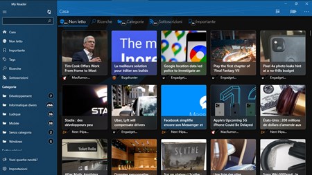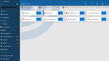 MyReader è un fantastico news reader : - Feedly - The Old Reader - Inoreader. - RSS / Atom + Microsoft Band, Continuum. L’obiettivo è semplice: connetterti nel modo più semplice possibile ai tuoi servizi preferiti di aggregazione feeds. Hai uno o più account? My reader fa al caso tuo! Puoi gestire il tuo account come vuoi… non ci sono limiti o restrizioni al numero di account.