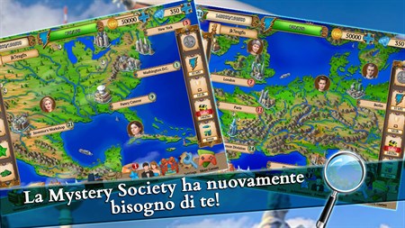 Funzionalità di Mystery Society 2 - Hidden Puzzles: • Viaggia in tutto il mondo per trovare gli oggetti rubati! • Per giocare non è necessaria la connessione a Internet! • Entra a far parte della squadra di detective e diventa uno degli agenti migliori! • Meravigliosi livelli di ricerca ambientati nelle città con una grafica magnifica! • Interagisci sia con i personaggi già conosciuti che con quelli nuovi! • Indaga su crimini e risolvi misteri complicati! • Cerca tesori nascosti e gioielli usando le parole, le immagini, le sagome e molto altro ancora! • Divertiti con l'impegnativa modalità Differenze! • Recupera tesori e gioielli perduti! • Completa gli obiettivi per diventare il detective migliore! • Usa i suggerimenti magici che ti aiuteranno a trovare gli oggetti difficili! • Se necessario, avvicina/allontana le dita sullo schermo per fare zoom in avanti/indietro e trovare gli indizi! • Collegati con altri giochi famosi come Relic Match per ricevere ricompense tutti i giorni! • Invia le chiavi e le scorte ai tuoi amici di Facebook! • Scambia gli oggetti per ricevere fantastiche ricompense! • Un misterioso gioco di oggetti nascosti gratuito! • Entra a far parte della Mystery Society, nel numero 1 dei giochi di oggetti nascosti! • Comprende minigiochi Match 3, Memory e tanti altri giochi divertenti!