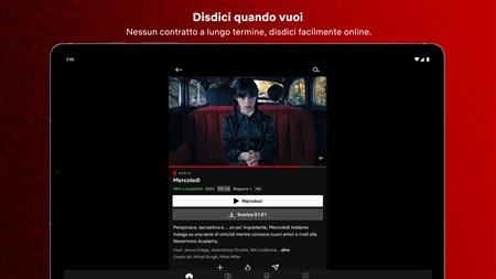 Cosa ti piacerà di Netflix: - Aggiungiamo serie TV e film di continuo. Sfoglia le novità oppure cerca i tuoi preferiti e guardali in streaming sul tuo dispositivo. - Più titoli guardi, più semplice sarà per Netflix suggerire serie TV e film che amerai. - Grazie ai nostri contenuti per famiglie puoi contare su una visione sicura pensata per i più piccoli. - Guarda brevi anteprime delle serie e dei film e ricevi notifiche quando sono disponibili nuovi episodi e nuove uscite.