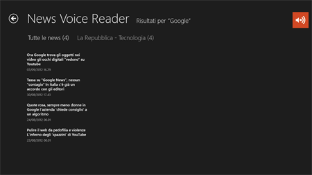 Ascolta le news dei tuoi feed preferiti invece di leggerle sullo schermo! News Voice Reader è un’innovativa applicazione per Windows 8 che sfrutta il servizio Microsoft Translator per effettuare la sintesi vocale degli articoli di tuo interesse, in qualunque lingua essi siano scritti. Sono supportate ben 44 lingue, tra cui inglese, francese, italiano, tedesco, spagnolo, cinese e giapponese.