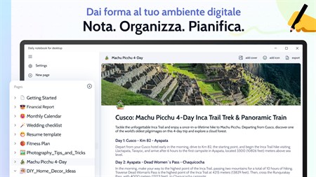 Trasforma facilmente i tuoi pensieri, idee e attività in pagine splendidamente organizzate. Daily Notebook è una soluzione unica che trasforma il modo in cui esprimi e organizzi la tua vita digitale
