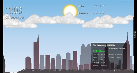 A fantastic way to get value from your big screens when they are not being used. The nsquared dashboard allows you to combine interactive scenes with glancable information, include the time, weather, and stock prices. Ideal for touch screens like the Surface Hub. Weather reflected on the screen in the scene. Time of day reflected in the scene. Scenes for Boston, Dubai, Las Vegas, Melbourne, San Francisco, Singapore, and Sydney. Customize the content of the screens through a web page. Manage multiple screens from the same web interface.