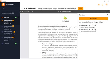 De Octopus-app, genaamd “Octopus GO”, is ontwikkeld om dossiers offline mee te kunnen nemen naar bijvoorbeeld zittingen, maar ook om dossiers automatisch naar bijvoorbeeld commissieleden te kunnen verzenden.