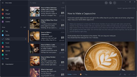 One Jotter è un'app per notebook e blocco note facile da usare, perfetta per organizzare appunti e registrare idee. Ti consente di mantenere tutto organizzato ed evitare disordine. Puoi usarlo per modificare file di testo semplice o salvare note in formato RTF. Supporta anche la scrittura e l'anteprima in formato Markdown (CommonMark).